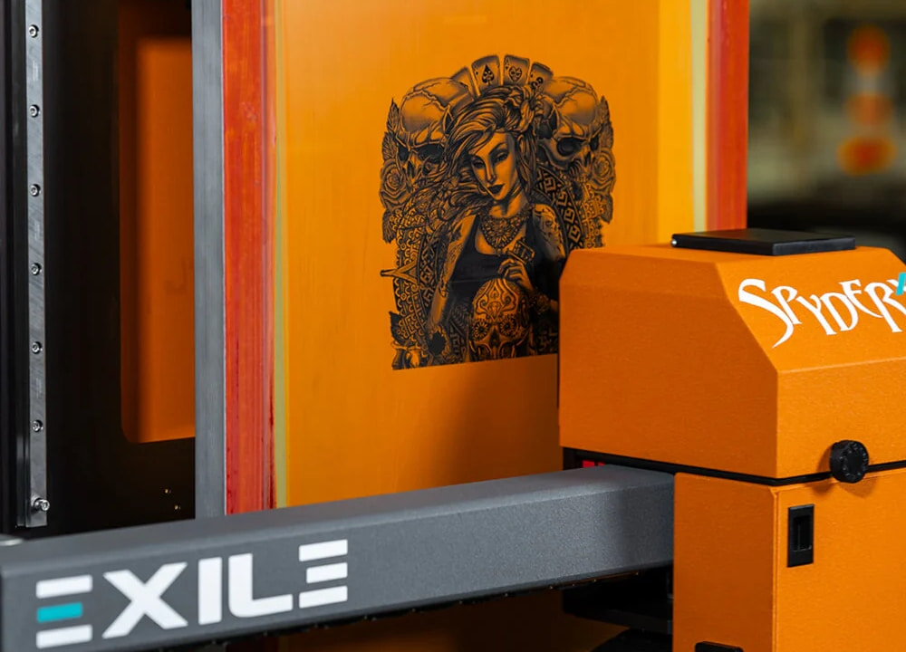 The EXILE Spyder X computer-to-screen printer builds on the trusted Spyder series, offering significant pre-press and setup time savings with enhanced flexibility. Its innovative drumless design allows screen printers to quickly and easily switch between multiple screen sizes, reducing the need for costly drum purchases and delivering immediate cost savings.
